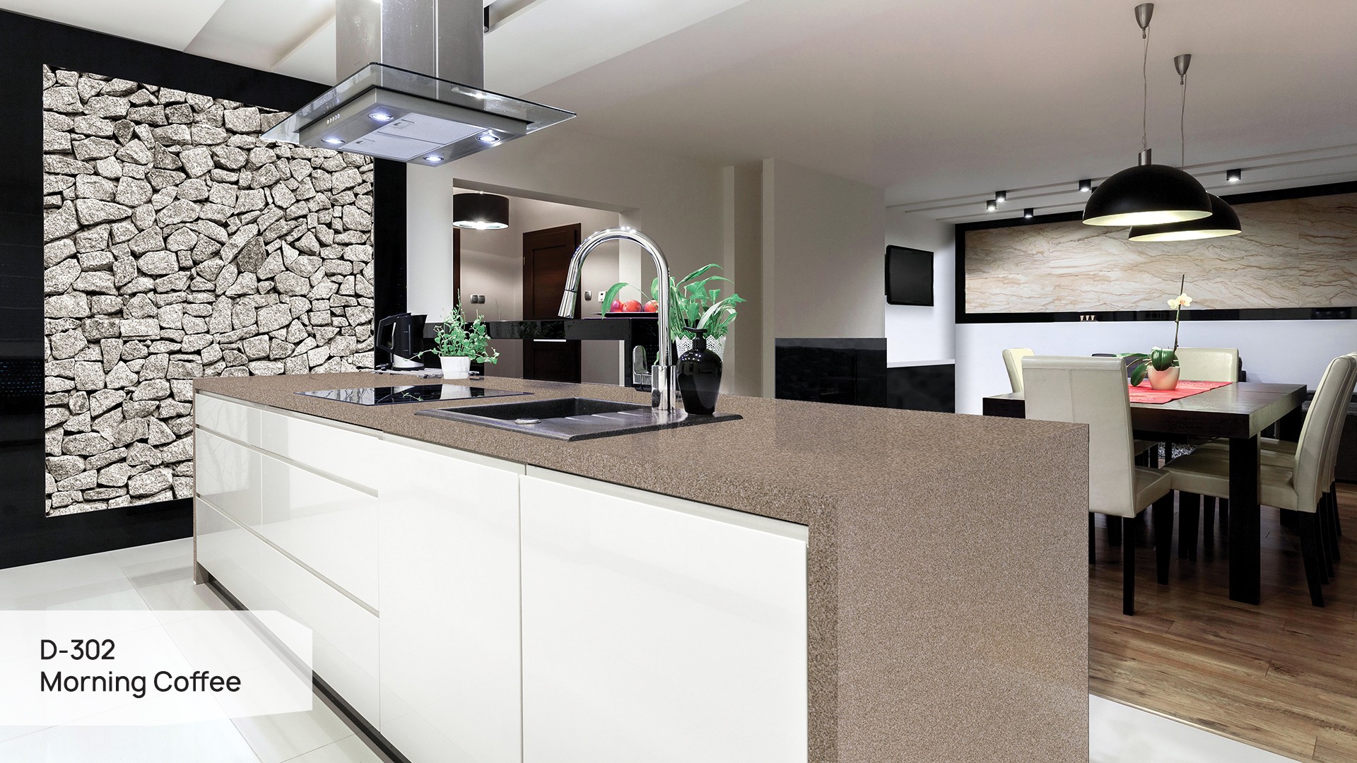 Sehen Sie, wie Stein und Keramikfliesen im Interieur aussehen