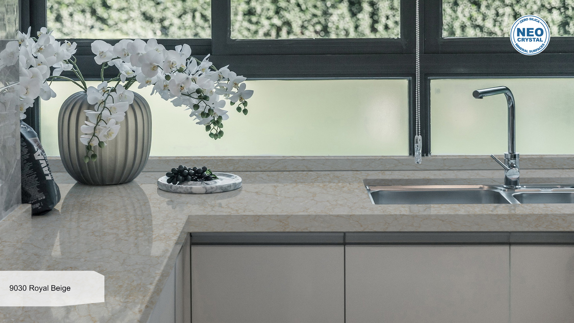 Dieses umweltfreundliche Material, das das Beste aus Natur und menschlicher Handwerkskunst vereint, besteht aus natürlichem Quarzkorn (95%), Polymerharzen (4%) und Pigmenten (1%).